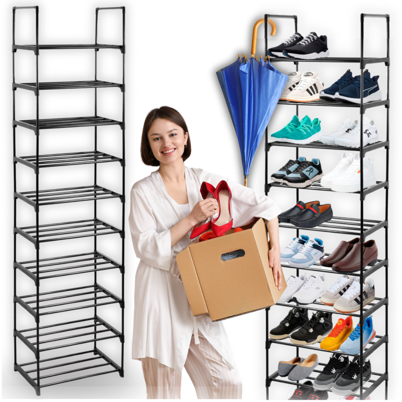 Modularna omarica za čevlje je popolna rešitev za ljudi, ki cenijo red in prihranek prostora . Zahvaljujoč 10 prostornim policam lahko organizirate svojo zbirko čevljev, njegova univerzalna zasnova pa omogoča, da se popolnoma prilega različnim notranjim prostorom – od hodnika, prek garderobe do hotelskega hodnika.