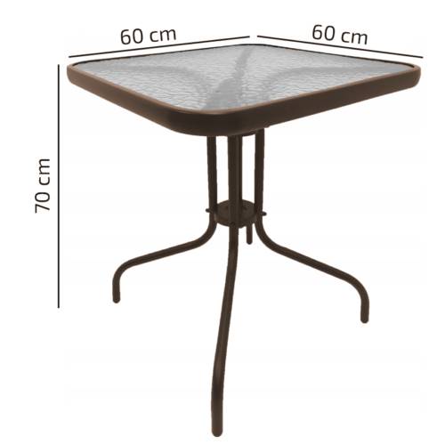 Rjava steklena vrtna miza s kovinskim podnožjem Celoten opis
