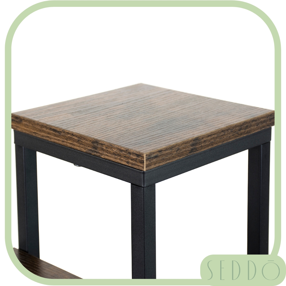 ✔ Trdna konstrukcija – kovinski okvir in police v imitaciji lesa