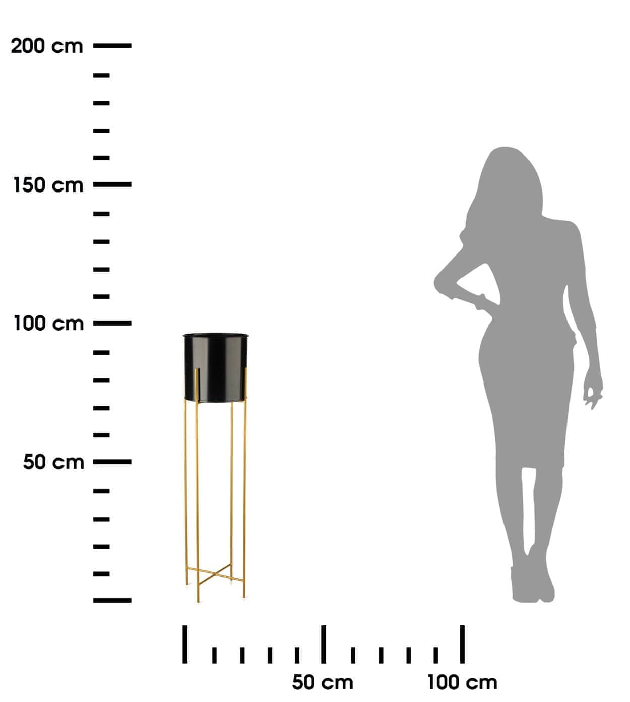 Moderno samostoječe stojalo za rastline v slogu mansarde. Zahvaljujoč svoji preprostosti in edinstvenemu dizajnu bo to stojalo dopolnilo vsak stil stanovanja, sobe ali hiše. Zaradi robustne in vzdržljive konstrukcije je primeren tudi za uporabo na balkonu, vrtu, gazebu ali verandi. Stojalo je izdelano iz praškasto lakirane jeklene žice, zaradi česar je odporno na zvijanje. Stojalo vključuje priložen vložek in pokrov. Stojalo za rastline je vzdržljivo, lahko in stabilno, zaradi česar je vsestransko uporabno za uporabo doma in na vrtu. Stojalo za rastline ima odstranljiv vložek. Prevleka ni vodoodporna, rastlin ali rož ne sadite neposredno vanjo. Stojalo za rastline je zlate barve, vložek pa črne barve. Izdelek ni odporen na vremenske vplive. Mere: višina 95 cm, širina 24 cm, globina 24 cm, premer vložka: 21 cm, višina vložka: 21 cm. Dimenzije se lahko razlikujejo za 2–3 cm zaradi ročne izdelave izdelka.