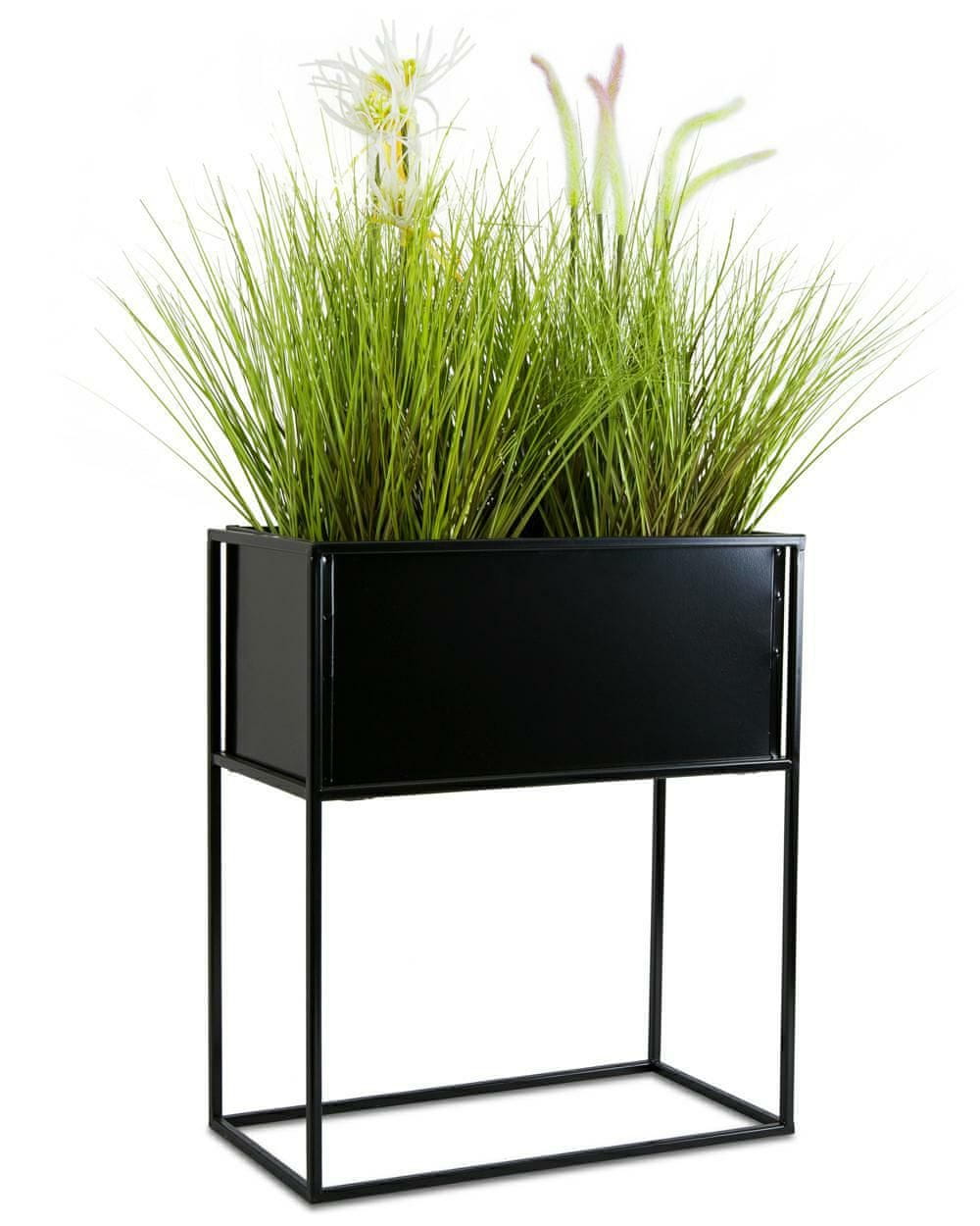 Moderno samostoječe stojalo za rastline v slogu podstrešja. Zahvaljujoč svoji preprostosti in edinstvenemu dizajnu bo to stojalo dopolnilo vsak stil stanovanja, sobe ali hiše. Zaradi robustne in vzdržljive konstrukcije je primeren tudi za uporabo na balkonu, vrtu, gazebu ali verandi. Stojalo je izdelano iz praškasto lakirane jeklene žice, zaradi česar je odporno na zvijanje. Vzdržljivo, lahko in stabilno stojalo je primerno za univerzalno uporabo doma ali na vrtu. Stojalo ima odstranljivo škatlo. Škatla ni vodoodporna, zato rastlin ali rož ne smete saditi neposredno v škatlo. Predstavljeno stojalo za rastline je črne barve. Mere: višina: 50 cm, širina: 44 cm, globina: 24 cm, globina škatle: 20 cm. Dimenzije se lahko razlikujejo za 2–3 cm zaradi ročne izdelave izdelka. Izdelek ni odporen na vremenske vplive.
