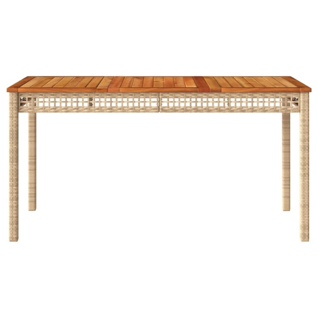 shumee Vrtna miza bež 140x80x75 cm poli ratan in akacijev les
