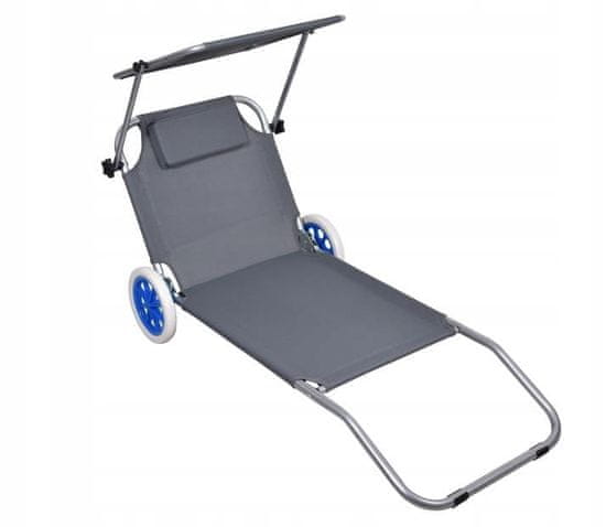 shumee Zložljiv ležalnik na kolesih, grafit, 152x61x87 cm