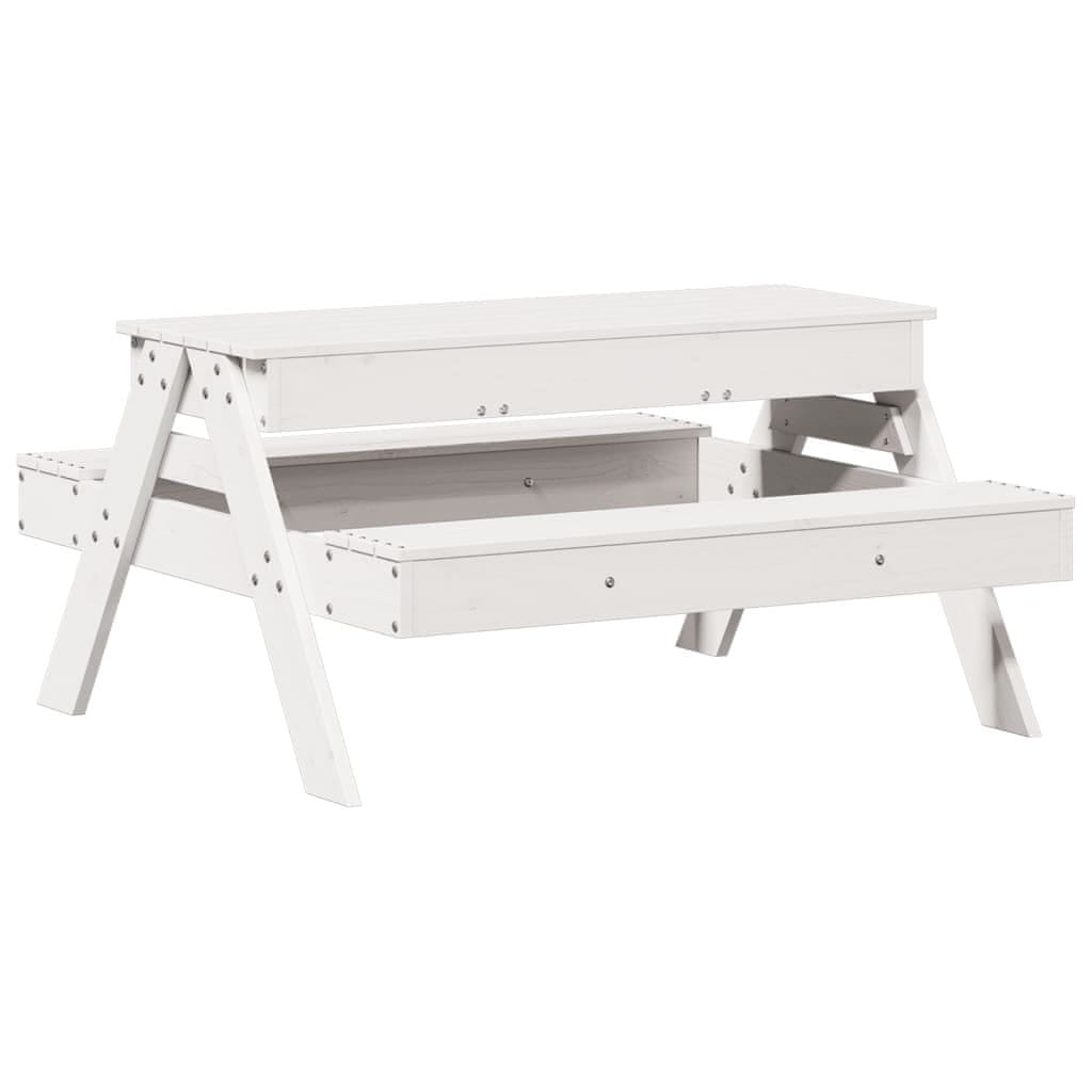 Vidaxl Miza za piknik s peskovnikom za otroke bela trdna borovina