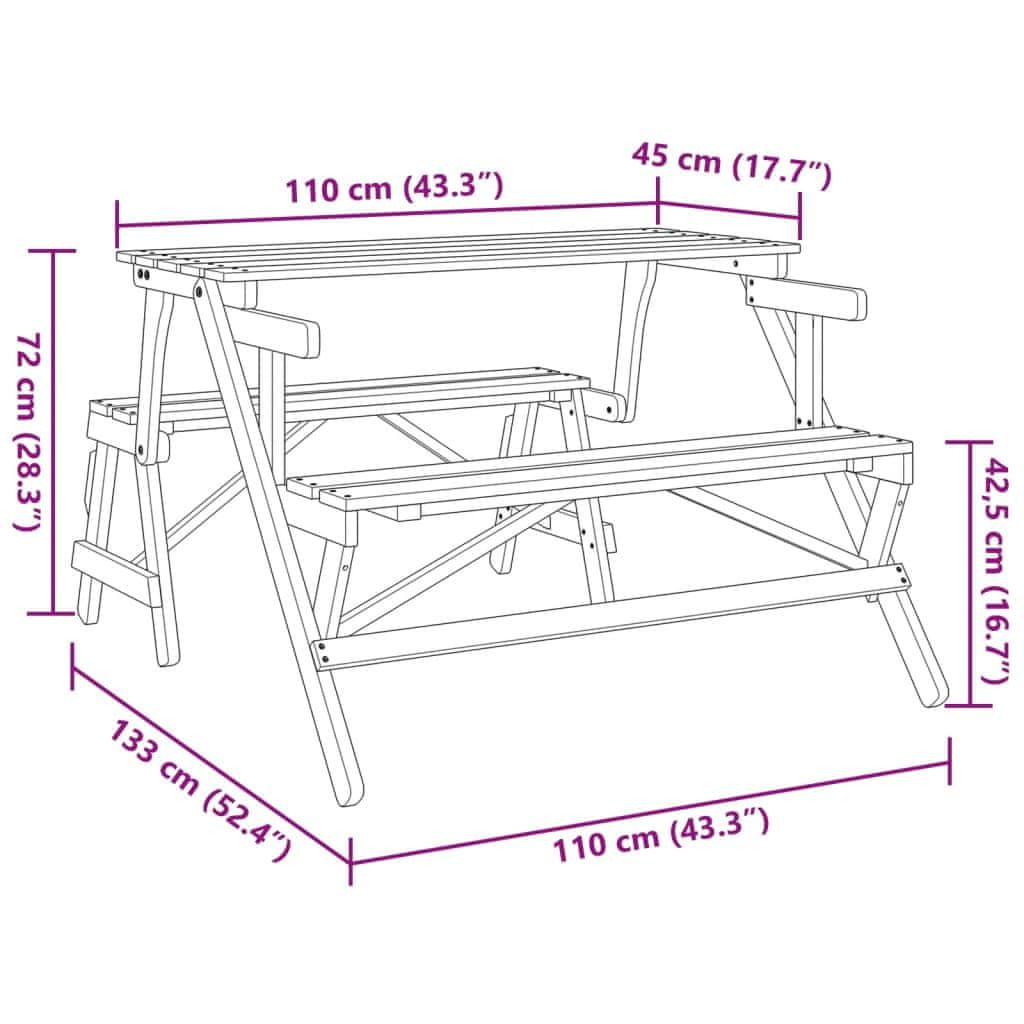 Ta piknik miza s klopmi je odlična za vašo teraso, vrt ali drug zunanji prostor, saj nudi udoben in privlačen prostor za sprostitev in uživanje. Zasnova 2 v 1: To piknik mizo z dvojno uporabo lahko postavite na dva različna načina. Ko je raztegnjena, služi kot piknik miza z dvema vgrajenima klopema, s preprosto predelavo pa postane vrtna klop z naslonjalom za sproščanje. Odporna na vremenske vplive in vzdržljiva: Piknik miza je izdelana iz masivnega jelovega lesa, kar zagotavlja vzdržljivost, dolgo življenjsko dobo in izjemno odpornost na vremenske vplive, zaradi česar je idealna izbira za uporabo na prostem. Trdna in stabilna konstrukcija: Miza ima noge v obliki črke A, ki zagotavljajo stabilnost in stabilnost. Dobro prezračena: Letvena konstrukcija omogoča kroženje zraka in preprečuje pregrevanje notranjosti. Koristno vedeti: Ta izdelek ni namenjen uporabi v neugodnih vremenskih razmerah, kot so močan veter, močno deževje, sneg, nevihte itd.