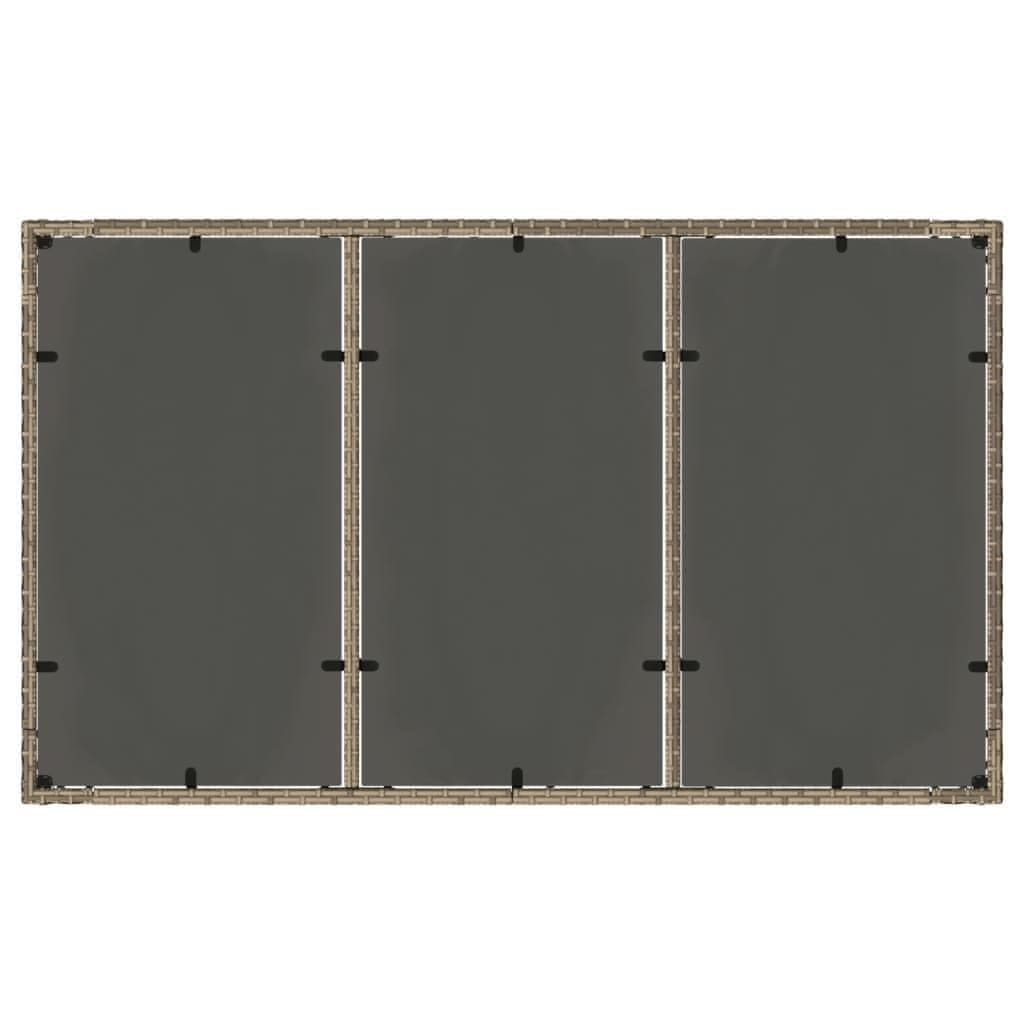 Vidaxl vidaXL Vrtna miza s stekleno ploščo, siva, 150x90x75 cm, PE ratan