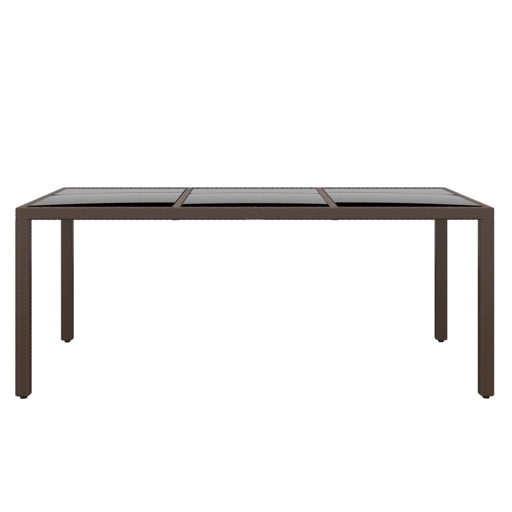 Vidaxl Vrtna miza 190x90x75 cm kaljeno steklo in poli ratan rjava