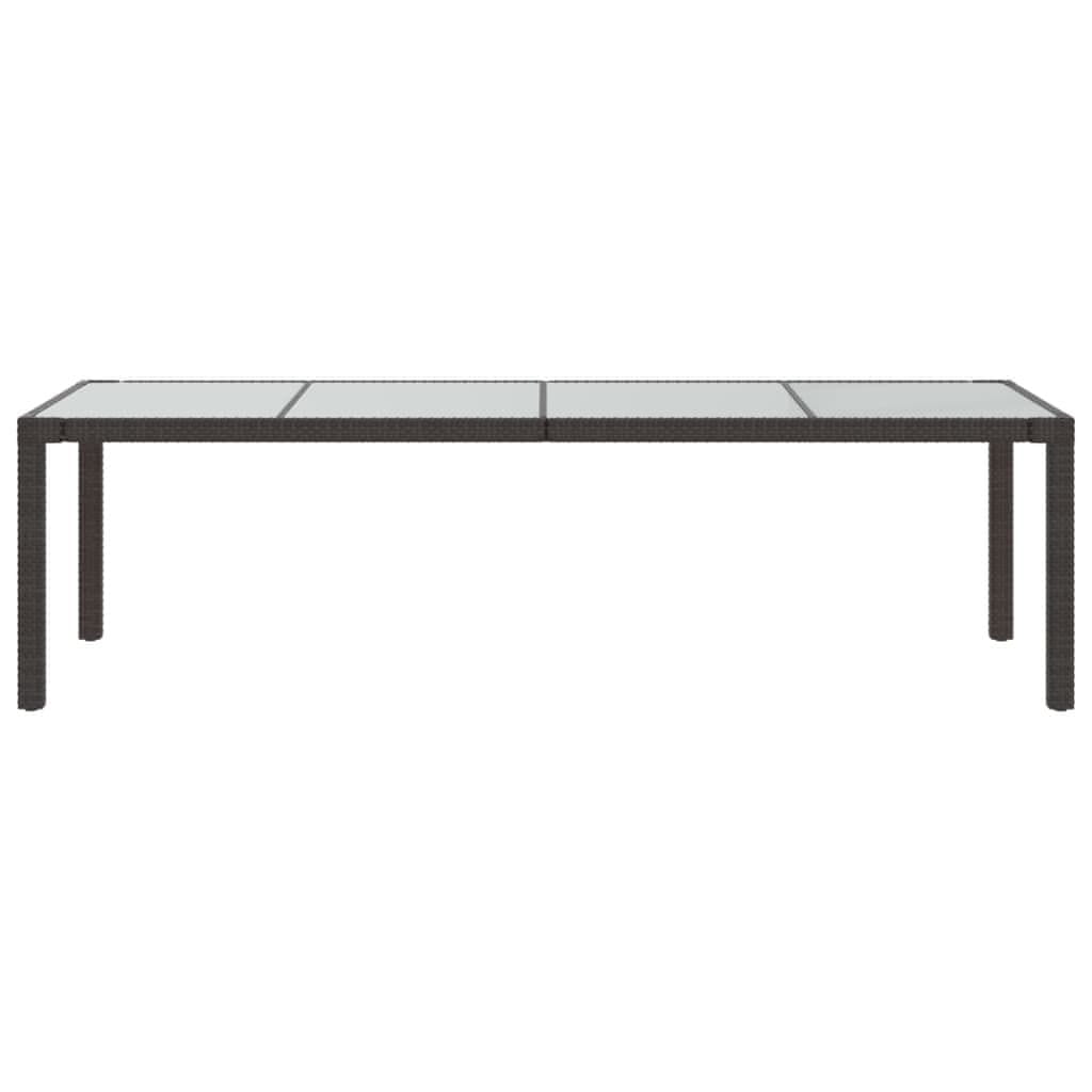 Vidaxl Vrtna miza rjava 250x100x75 cm kaljeno steklo in poli ratan
