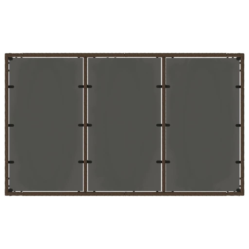 Vidaxl Vrtna miza s stekleno ploščo rjav 150x90x75 cm poli ratan