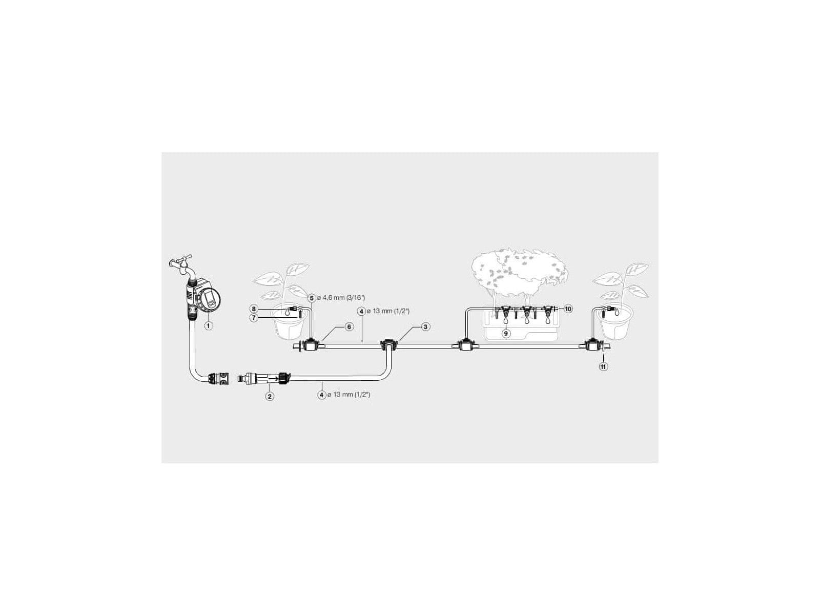 Zahvaljujoč pripravljenemu kompletu Ready-2-Use imate vse, kar potrebujete, da zagotovite optimalno kapljično zalivanje različnim rastlinam z različnimi potrebami po vodi.