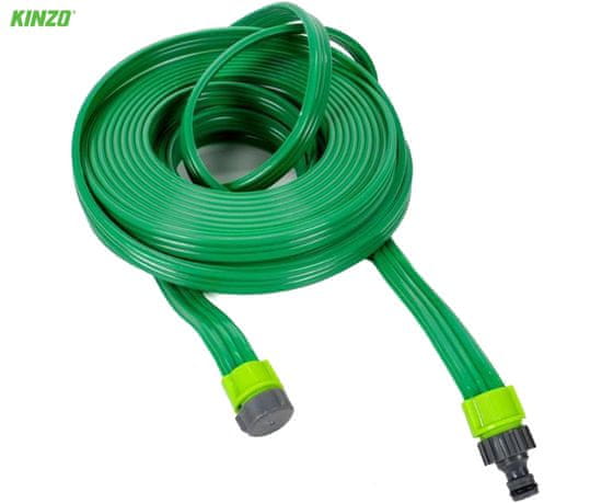 Kinzo Garden omogoča enostavno zalivanje vašega vrta. Oblikovana je z luknjami ter s postopnim kapljanjem vode zagotavlja vašim rastlinam popolno oskrbo. Opremljena je z univerzalnim priključkom za takojšnjo uporabo. Zahvaljujoč prilagodljivi zasnovi omogoča zalivanje trate ter ostalih rastlin s preprostim obračanjem cevi. Celoten opis