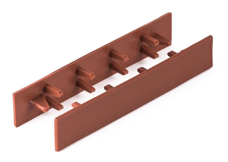 Krivala G21 so idealna dodatna oprema za teraso WPC. Uporabljajo se za elegantno zaključevanje terasnih deske. V primeru, da se pokrov ne prilega gladko, priporočamo, da odrežete zunanjo stran dveh „robnih izboklin“ (glej fotografijo). Nato prilepite pokrovčke na svoje mesto z uporabo ustreznega lepila, kamor spada tudi Mamut (ni priložen).