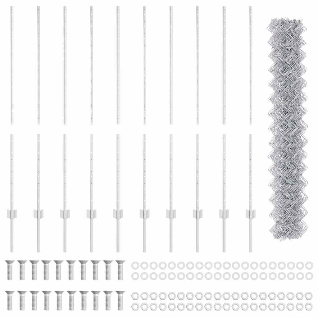 Vidaxl Ograja s stebrom srebrna 1,4 x 10 m Jeklo