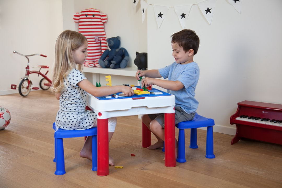 Mizica CONSTRUC TABLE, dimenzije artikla 51 × 51 × 44cm, barve: modra, rdeča, bela, ZADNJI KOSI Celoten opis