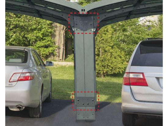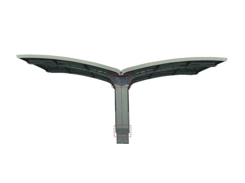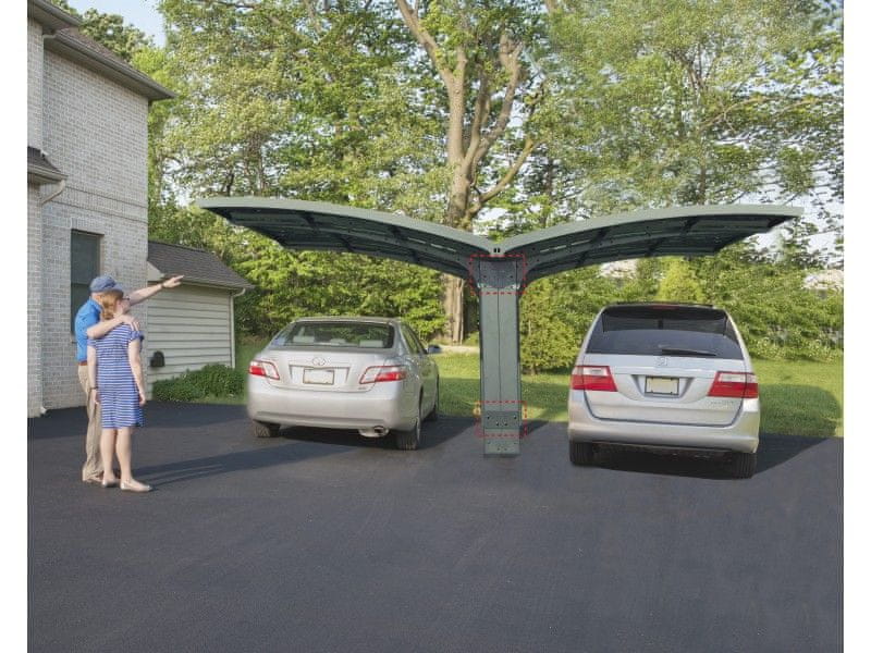 Oba avtomobila pokrijte s kompletom EZ LINK. S kompletom lahko ustvarite čudovito rešitev, ki prihrani prostor. Dva nadstreška za avto sta lahko s tem kompletom povezana v obliki krila ali loka.