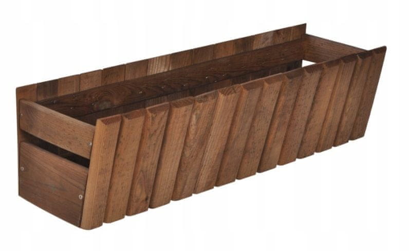 Lesena balkonska škatla „Stillotka“ 60 cm rjava Balkonsko škatlo „Stillotka“ izdeluje Sobex, podjetje, znano po svoji natančni izdelavi. Ta lonček se bo odlično dopolnil z vašim balkonom ali vrtom. Impregniran je pod pritiskom. Cvetoče rože, zelene rastline in sveža zelišča bodo v njej videti čudovito – prepričajte se sami! Parametri: Tlačna impregnacija: WOLMANIT CX10 Linija: Stokrotka Vrsta: balkonska škatla Material: les (bor) Širina: 600 mm Globina: 200 mm Višina: 170 mm Prostornina: 20 l Barva: rjava Dodatne informacije: Izolacijska folija je priložena Kaj je Wolmanit CX-10? Wolmanit CX-10 je izdelek s strogo določenim namenom: uporablja se izključno za tlačno impregnacijo. Ščiti pred hišnimi plesni in žuželkami – tehničnimi lesnimi škodljivci. Ta izdelek se uporablja za zaščito lesa, ki je izpostavljen vlagi in celo dolgotrajnemu stiku s tlemi. Les, obdelan z njim, razvije značilen zelenkast preliv.