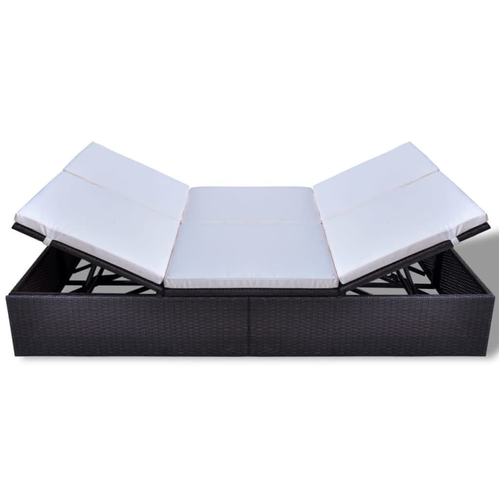 Vidaxl Dvojni ležalnik z blazino poli ratan rjav