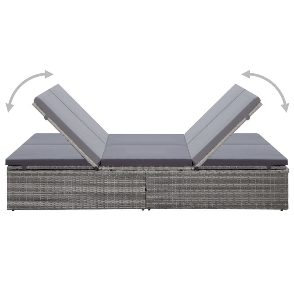 Vidaxl Dvojni ležalnik z blazino poli ratan siv