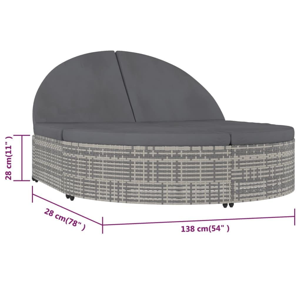Vidaxl Ležalnik za 2 osebi z blazinami poli ratan siv