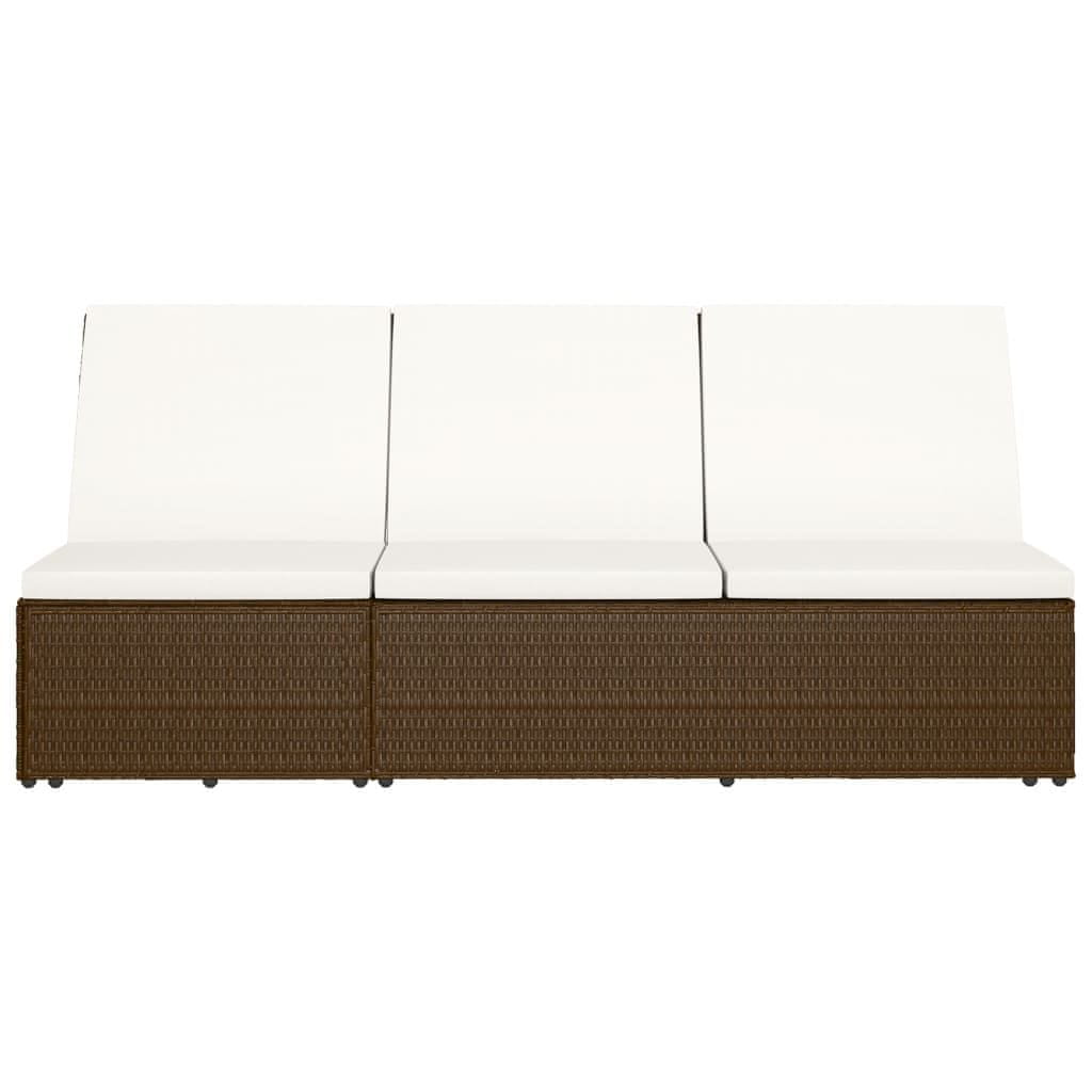Vidaxl Spremenljiv ležalnik z blazino poli ratan rjav