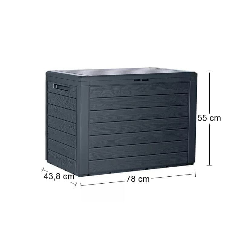 Praktična plastična vrtna skrinja MBWL190 190 ls z imitacijo lesa je odlična za uporabo na vrtu ali terasi, za shranjevanje blazin, blazin ali katerega koli vrtnega pribora ali otroških igrač. Njene dimenzije (ŠxGxV): 78×43,8×55 cm in je izdelana v čudoviti antracitni barvi, ki se popolnoma prilega… Celoten opis