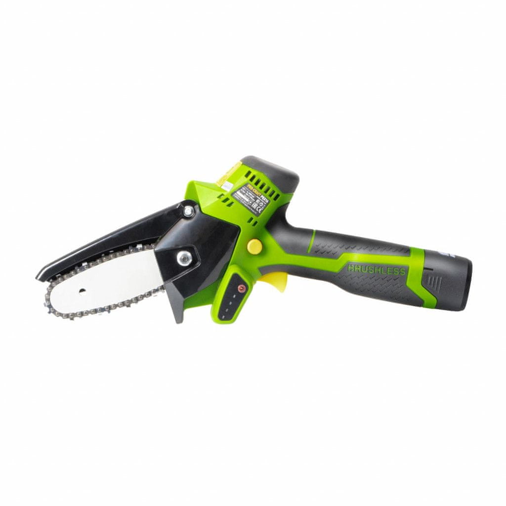 Zaradi svojih kompaktnih dimenzij je AKU enoročna motorna žaga uporabno orodje za obrezovanje dreves in grmovja pri delu v omejenih prostorih. Njegovo delovanje je v primerjavi z večjimi stroji tiho. Opremljena je z zaščito pred povratnim udarom in varnostnim ščitnikom verige žage. Celoten opis