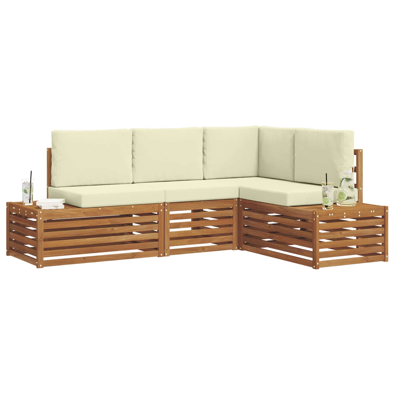 Vzdržljiv trden akacijev les: Ta zunanja garnitura, izdelana iz trdnega akacijevega lesa, je znana po svoji trpežnosti in odpornosti na zunanjo okolico. Močna konstrukcija zagotavlja zanesljivo podporo in stabilnost, medtem ko naravni odtenek lepo obogati vsak vrt ali teraso.Odpornost na vreme: Lakirana površina te garniture nudi dodatno zaščito pred soncem, dežjem in drugimi zunanjimi vplivi. Polirana površina ohranja videz in funkcionalnost, kar ji podaljšuje življenjsko dobo na vašem vrtu ali terasi.Komponente in zasnova: Vsak element, od naslonov do sedežne površine, je oblikovan za stil in uporabnost. Konstrukcija ponuja dodatno udobje, medtem ko celotna zasnova zagotavlja vizualno harmonijo za različne priložnosti na prostem.Udobje in prilagodljivost: Modularna zasnova omogoča prilagodljive postavitve za različne prostore in potrebe. Ta set je pravi za sprostitev, družabne dogodke ali mirno branje, prilagaja se vsakemu zunanjemu okolju in maksimizira udobje.Enostavno vzdrževanje: Da bi pohištvo ostalo v dobrem stanju, ga preprosto obrišite z vlažno krpo in se izogibajte močnim čistilom. Redno vzdrževanje podaljšuje videz in življensko dobo pohištva.