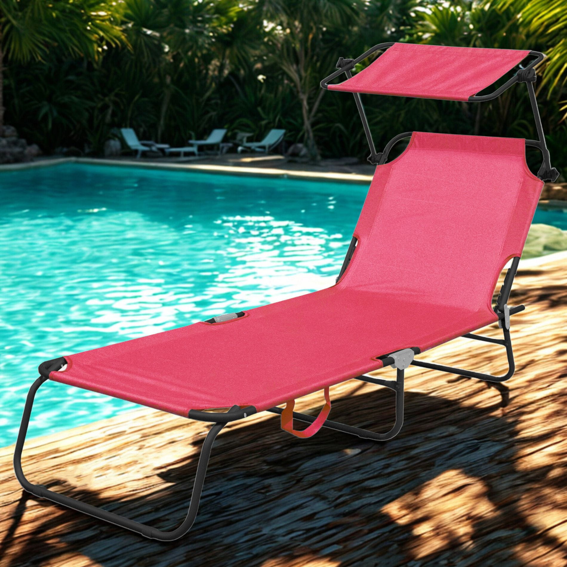 Aga Vrtno nastavljivo ležalnik s streho Roza
