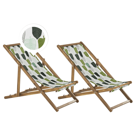 Beliani Komplet 2 ležalnikov iz svetlega lesa z vzorcem listov ANZIO