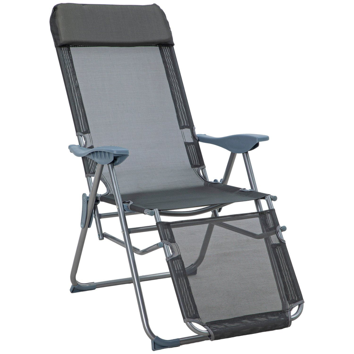OUTSUNNY Ležalnik, Zložljiv Ležalnik, Vrtni Ležalnik Z Nastavljivim Naslonjalom, Ležalnik Relax Za Balkon, Terasa, Mreža, Siva, 63 X 81 X 108 Cm