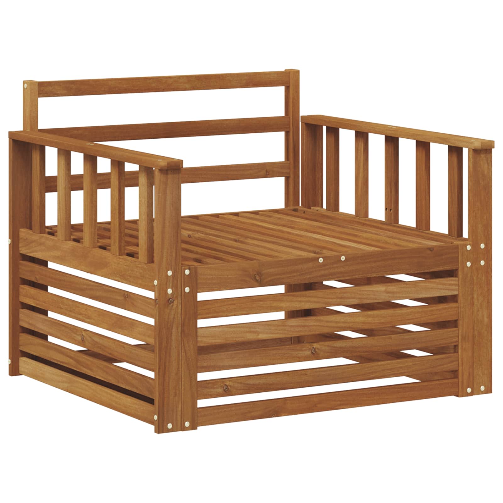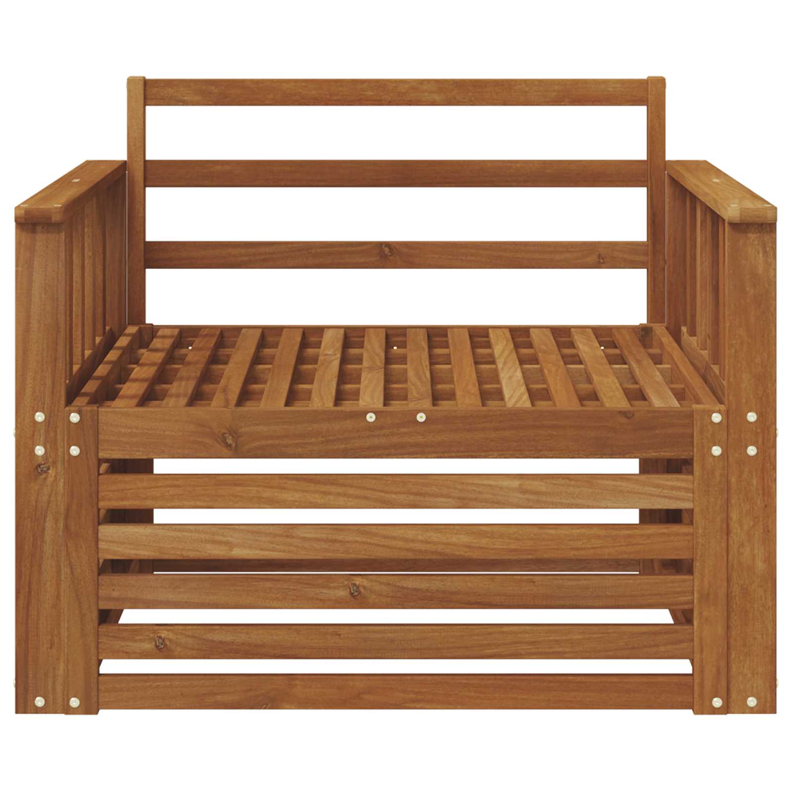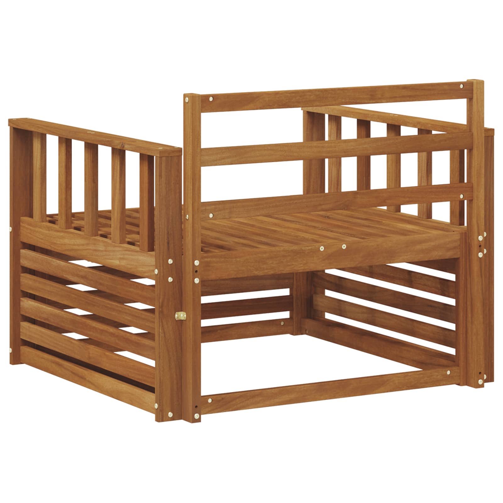 Vzdržljiv trd akacijev les: Ta zunanji pohištveni set je znan po svoji trpežnosti in odporen na zunanje vplive. Močna konstrukcija nudi zanesljivo podporo in stabilnost, medtem ko topel naravni ton izboljša vsak vrt ali teraso.Oblikovanje, odporno na vreme: Set ima lakirano površino, ki dodatno ščiti pred soncem, dežjem in drugimi zunanjimi vplivi. Polirana površina ohranja videz in funkcionalnost, kar zagotavlja dolgotrajno vzdržljivost za vaš vrt, teraso ali dvorišče.Komponente in dizajn: Vsak kos, od naslonjal za roke do naslonjal za hrbet, je zasnovan tako, da ponuja stil in funkcijo. Dodatni podporni elementi prinašajo udobje, medtem ko celoten dizajn spodbuja vizualno harmonijo za različna zunanja srečanja.Udobje in prilagodljivost: Modularna zasnova omogoča različne konfiguracije, ki ustrezajo različnim prostorom in potrebam. Idealen za sprostitev, družabna srečanja ali mirno branje, ta set se brez težav prilagaja vsakemu okolju in nudi maksimalno udobje.Enostavno vzdrževanje: Za ohranjanje pohištva v privlačnem stanju, površino obrišite z vlažno krpo in se izogibajte ostrim čistilom. Redno vzdrževanje pomaga, da ostane lepo in podaljša njegovo življenjsko dobo.Zaradi svoje velikosti je ta izdelek mogoče dostaviti v več paketihSKU: