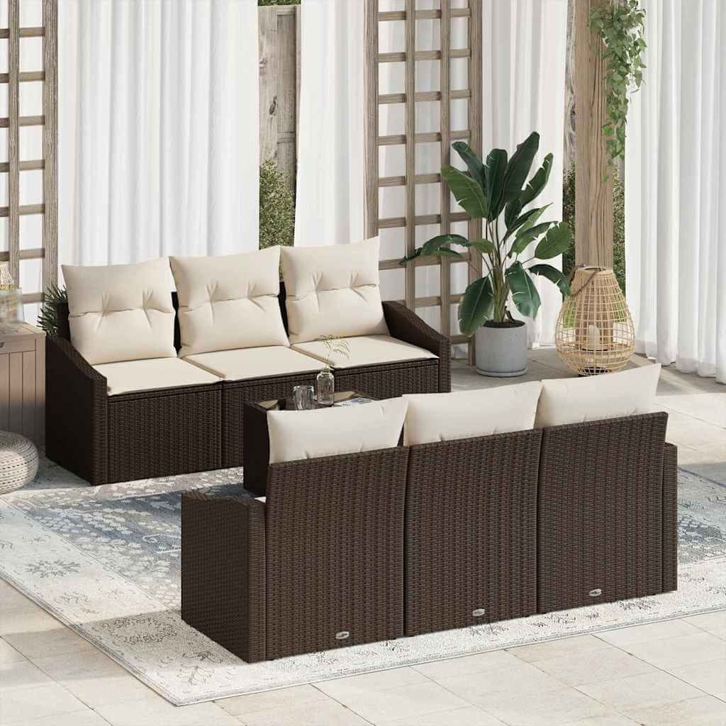 Vidaxl Kavčna garnitura z blazino 7 pcs Rjava in krem poli ratan