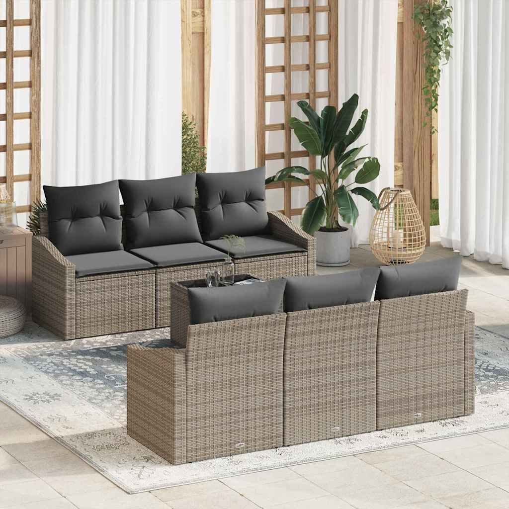 Vidaxl Kavčna garnitura z blazino 7 pcs Siva poli ratan