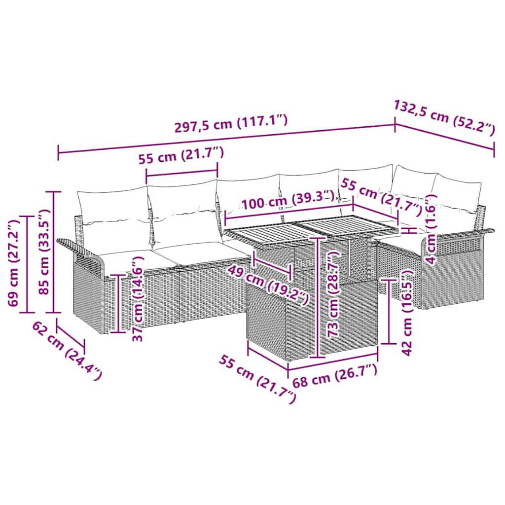 Vidaxl Vrtna sedežna garnitura z blazino 7 pcs Siva 100 x 55 x 73 cm