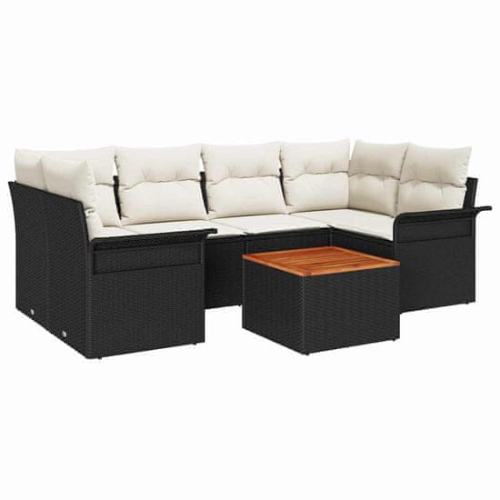 Vidaxl Vrtna sedežna garnitura z blazino z blazino 7 pcs Črna in krem