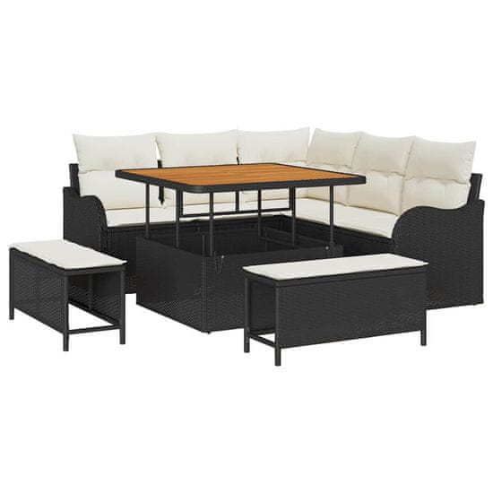 Vidaxl Vrtna sedežna garnitura z blazino z blazino 8 pcs Črna in krem