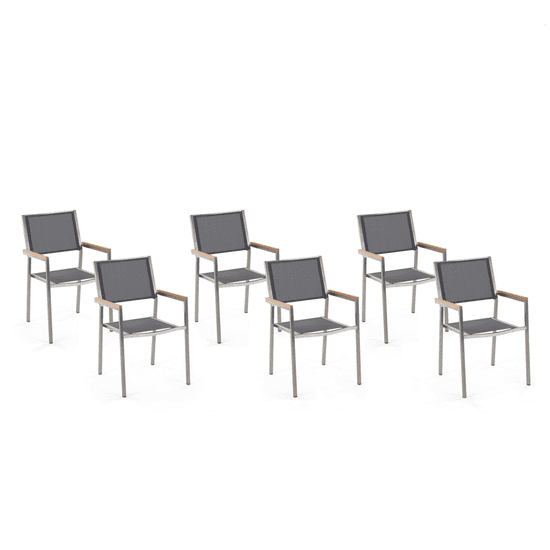 Beliani Komplet šestih sivih vrtnih stolov iz nerjavečega jekla GROSSETO