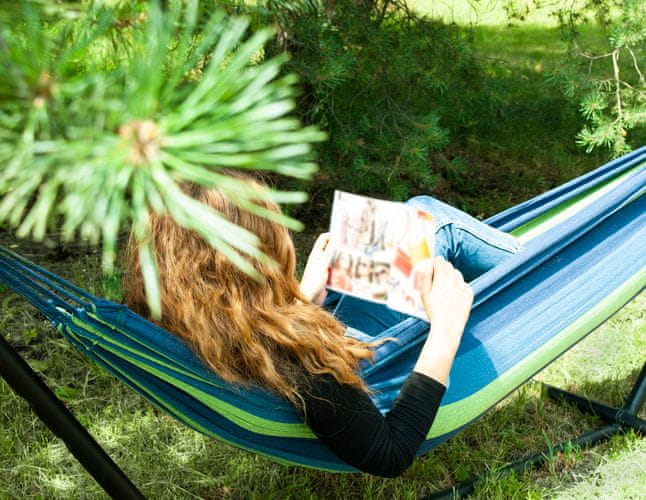 - UDOBNO / ZA DVE OSEBI – ta izjemno udobna in funkcionalna viseča mreža vam bo omogočila sprostitev v prijetnih razmerah. Zahvaljujoč svoji ogromni velikosti lahko užitek rekreacije na prostem delite z ljubljeno osebo. Odlična bo na vrtu, terasi, balkonu ali celo v sobi! Bi radi ležali po dolžini? Ali morda počez? Obe možnosti bosta udobni in vam bosta omogočili sprostitev v udobni viseči mreži.