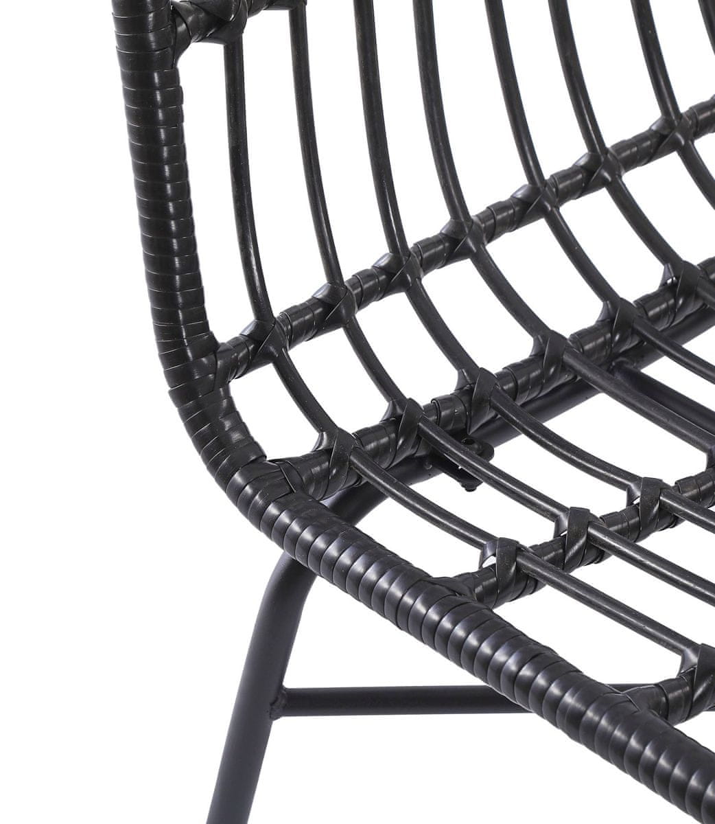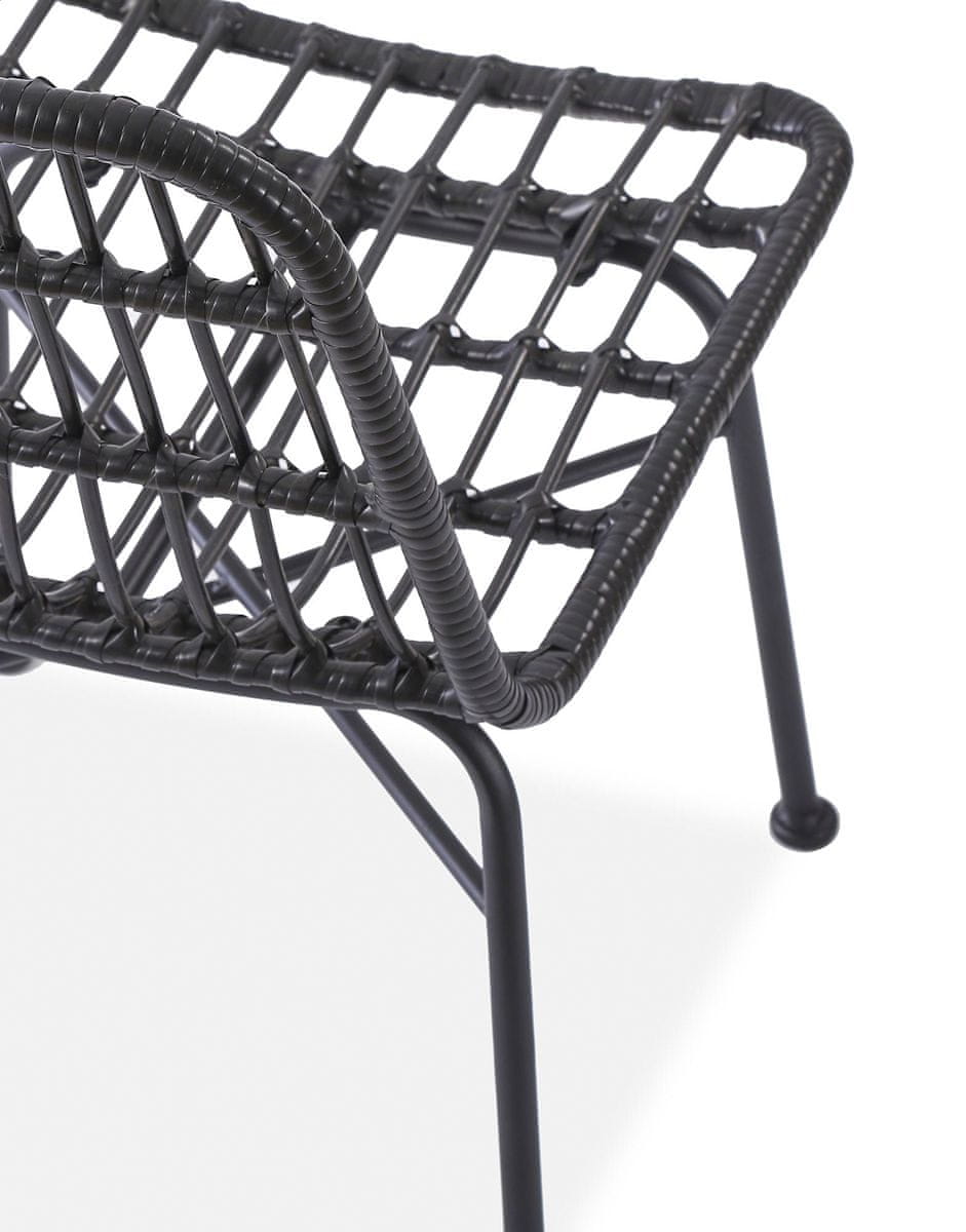 Stol je izdelan iz umetnega ratana, ki je pleten, kar mu daje stilski in eleganten videz. Ogrodje stola je izdelano iz prašno barvanega jekla, ki zagotavlja dolgo življenjsko dobo in odpornost na poškodbe. Oblazinjenje na sedežu prispeva k udobju sedenja.