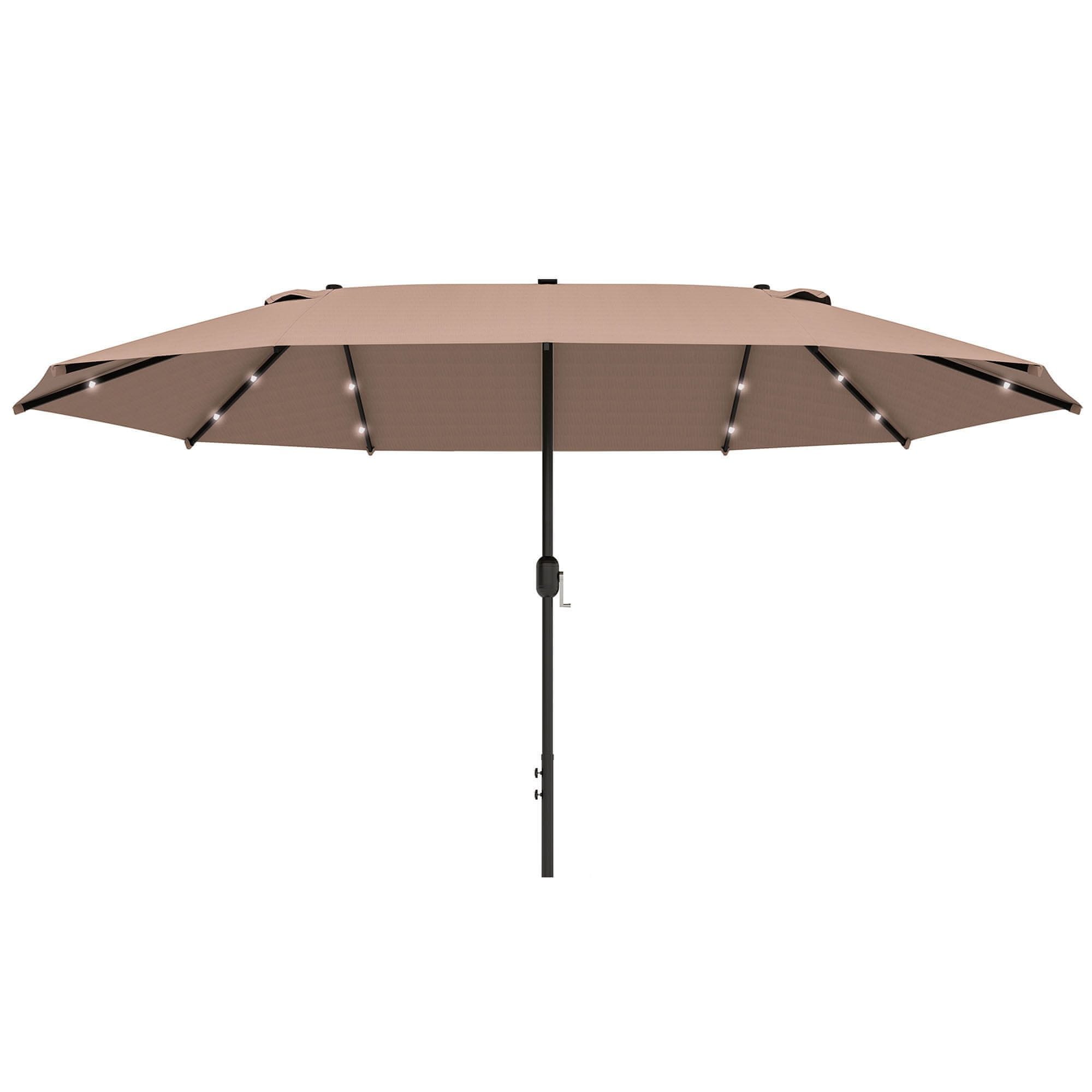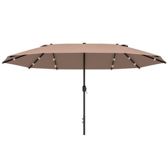 Ta velik vrtni dvojni senčnik nudi veliko sence in ima vgrajene LED luči za večerno uporabo. Idealno za vrtove in terase, nudi zaščito pred soncem podnevi ter osvetlitev ponoči za sproščanje ali zabavo na prostem. Celoten opis