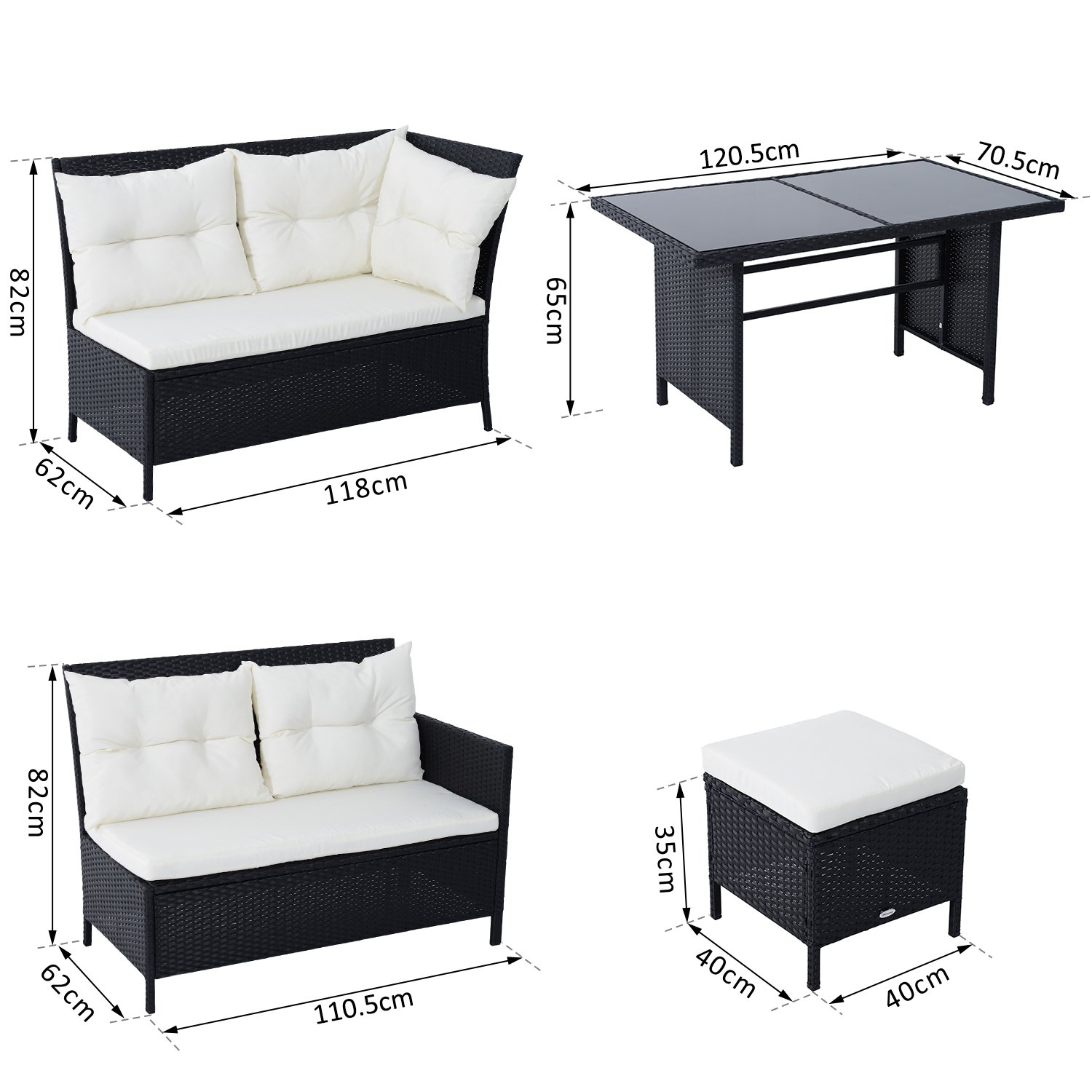 OUTSUNNY Outsunny 6-delni set zunanjega pohištva iz ratana z vrtnimi blazinami črne barve