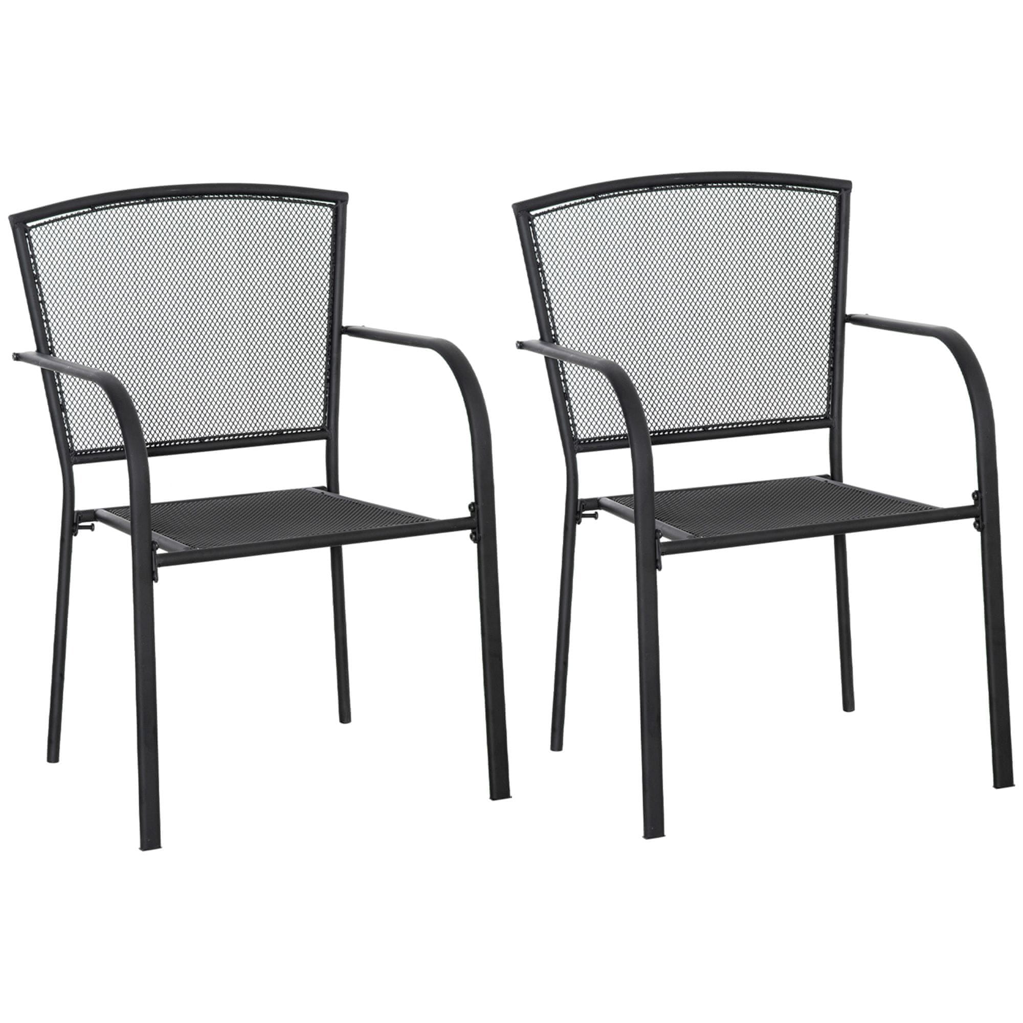 OUTSUNNY Outsunny Komplet 2 kovinskih vrtnih stolov, zunanji stoli za dvorišče, teraso in teraso, črni