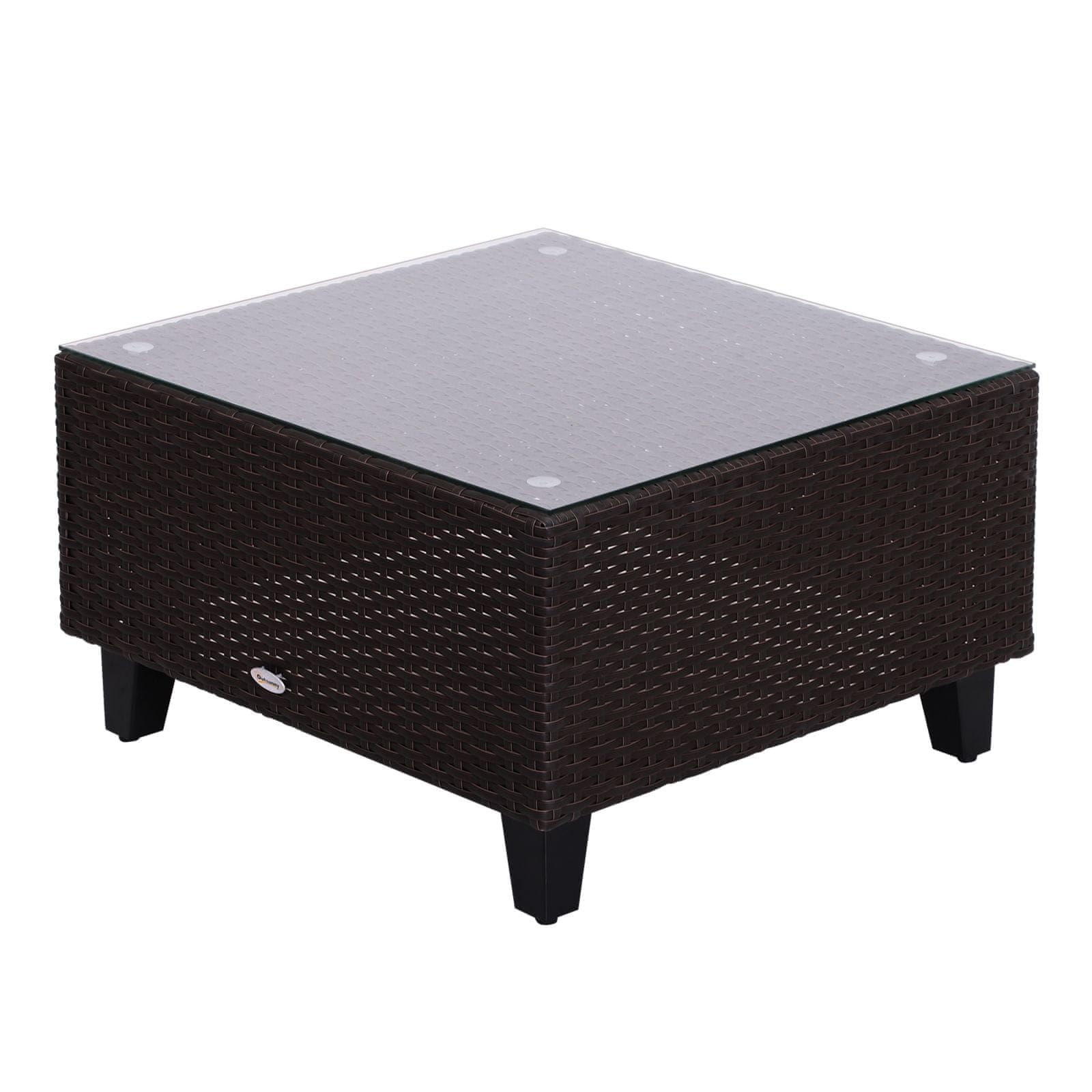 OUTSUNNY Outsunny Komplet 5 kosov vrtnega pohištva Miza za kavo s kaljenim steklom iz ratana 3 fotelji 1 podstavek za noge 1 aluminij, ratan