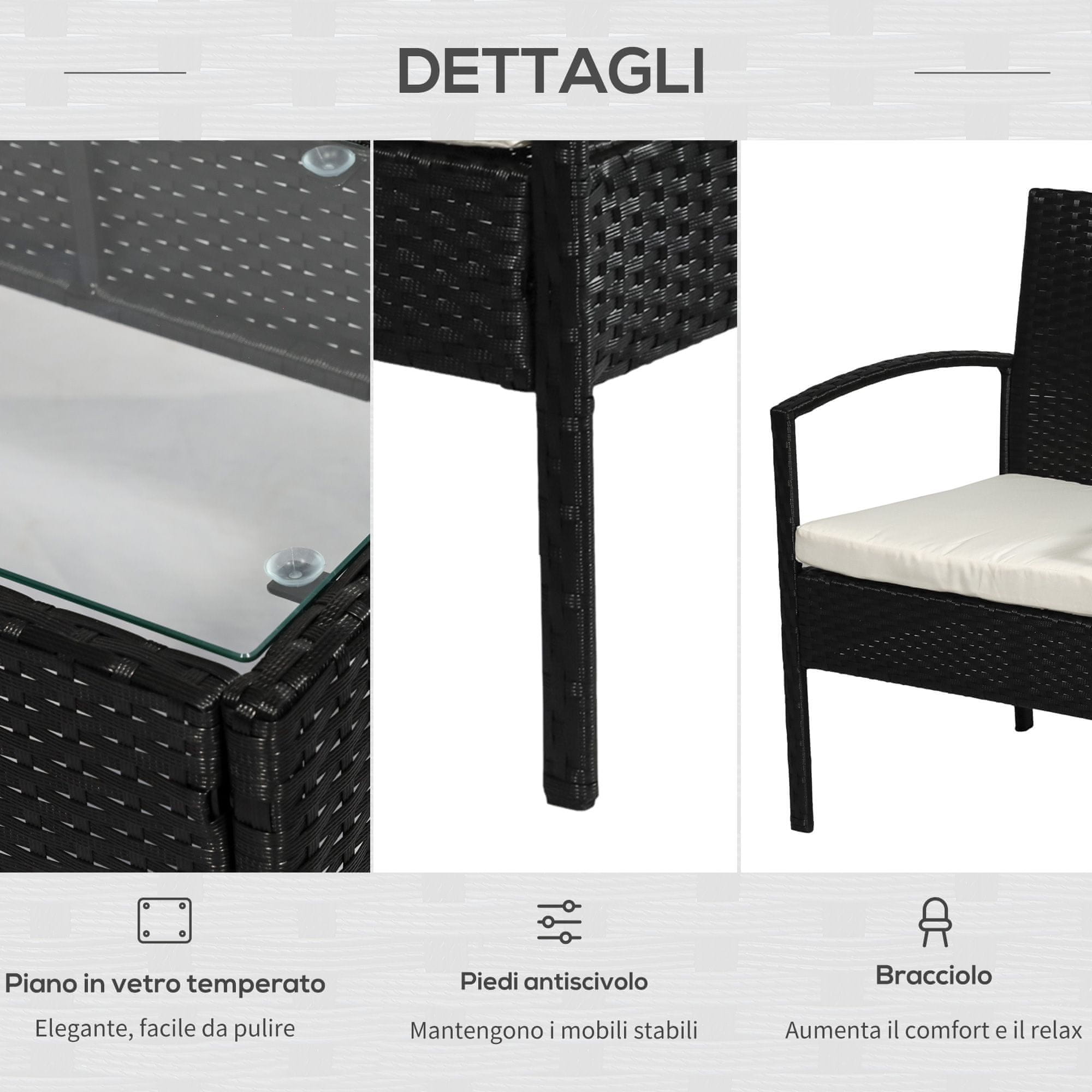 OUTSUNNY Outsunny Komplet vrtnega pohištva iz sintetičnega ratana, ki ga sestavljajo 1 mizica za kavo, 2 fotelja in 1 dvosedežni kavč črno-krmne barve