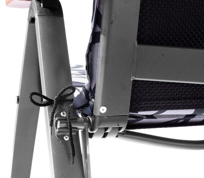 Vrtni naslanjač Comfort z aluminijasto konstrukcijo, nasloni za roke iz evkaliptusovega lesa in odporno 4×4 mm tkanino na sedežu/naslonjalu. Celoten opis