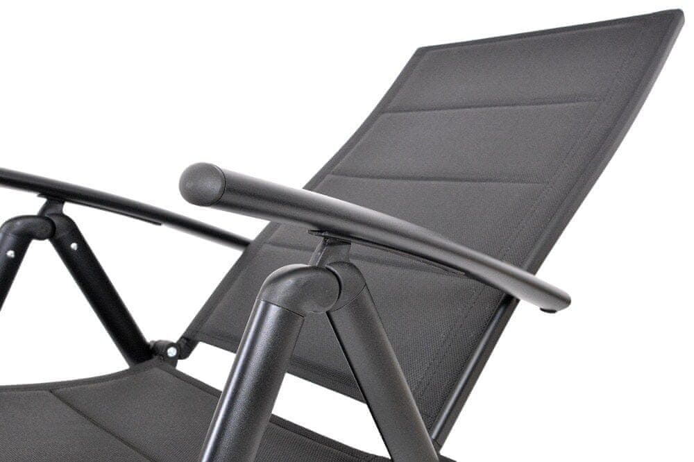 Eleganten aluminijast naslanjač je zasnovan za maksimalno udobje na terasi, balkonu ali vrtu. Opremljen je s kakovostno tkanino 2×1 in hitrosušečim penastim polnilom, ki zagotavlja prijetno sedenje tudi po dežju. Nastavljivo naslonjalo omogoča kar sedem različnih položajev, zato lahko brez težav najdete idealen položaj za branje, sončenje ali počitek.