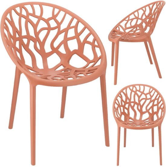 Stol iz kolekcije ALBERO Zaobljen sedež iz polipropilena z vzorcem razvejanega drevesa zagotavlja udobje in stilski dodatek notranjosti. Debele, masivne noge se prilegajo celemu in zagotavljajo popolno stabilnost. Stol je izdelan iz enega kosa – ni ga potrebno sestavljati in je odporen na vremenske vplive, zato ga lahko uporabljate tako v zaprtih prostorih kot na prostem.