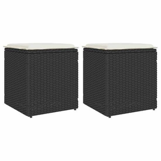 shumee vidaXL Vrtni stolčki z blazinami 2 kosa Črna 40x40x43 cm Poly Rattan