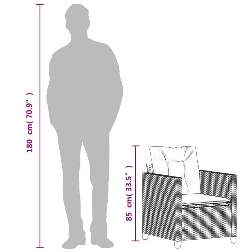 shumee Vrtni stol z blazinami črn poli ratan