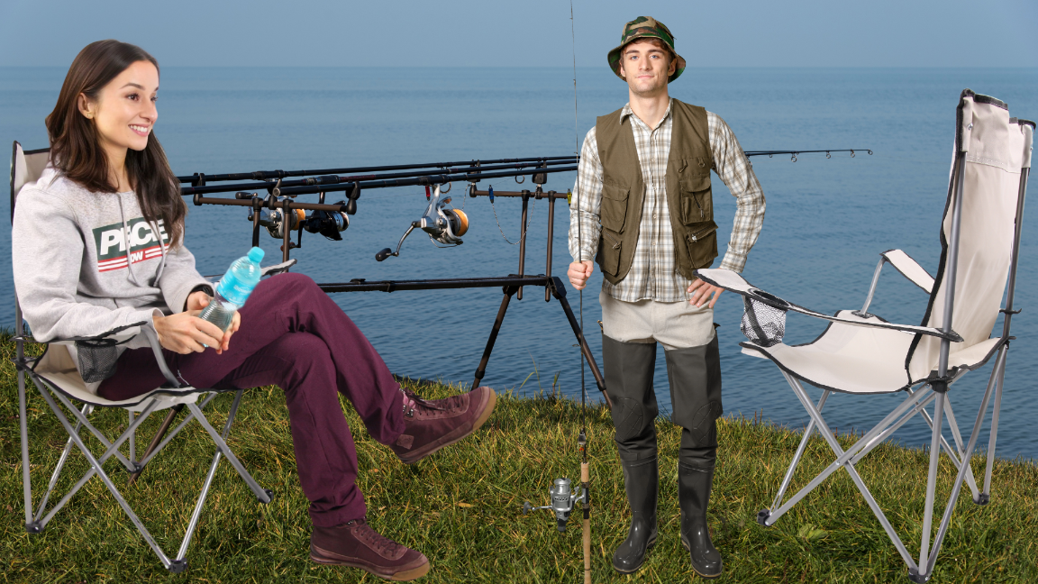 Lahek zložljiv stol, primeren za ribolov, vrt, balkon ali plažo.
